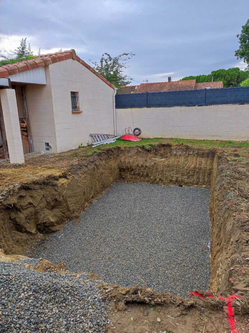 Implantation Trou piscine + Assise petit cailloux